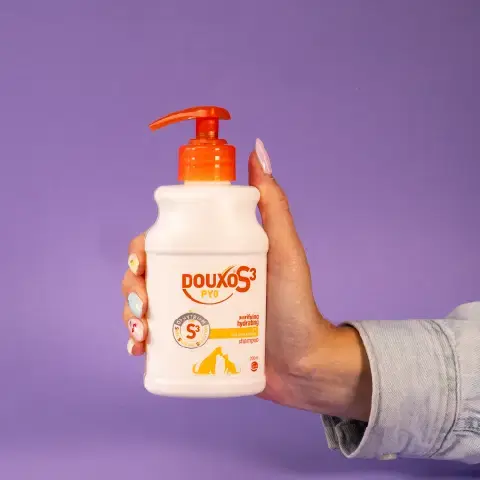 ניתן לשלב גם את DOUXO S3 PYO Mousse לתוספת טיפול מקומי שאינו דורש שטיפה.