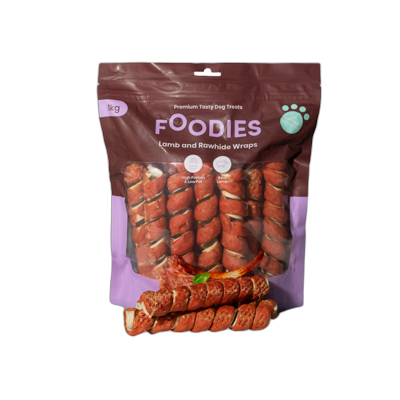 פודיז חטיפי טלה וראווהייד – חטיף לכלבים 1000 גרם